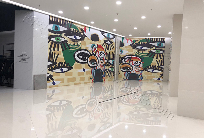 四、高空喷绘画面:跟上面的性质是一样的,只不过他们是用在外墙高空做宣传的,可见性强,安装比卖场打围和道路围挡难度系数较高。